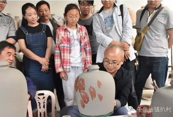 專家們首先參觀了古玩市場,在市場上與商戶溝通并且收藏了部分扒村瓷標本,隨后又來到了扒村席家窯坊,在扒瓷胎坯上繪畫,中午12點30分了大師們還是舍不得離開,紛紛表示,這作為他們學生的創(chuàng)作基地簡直棒極了,可見他們真的是對扒村瓷情有獨鐘,這就是扒村瓷的魅力所在。據(jù)了解,許昌學院美術學院即將在扒村設立創(chuàng)作基地,這對推進扒村文化創(chuàng)新,增強文化發(fā)展和提高扒村瓷知名度及美譽度都將起到積極的推動作用,也將成為外界了解禹州扒村瓷文化的一個窗口。