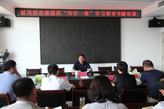為深入貫徹落實(shí)“兩學(xué)一做”學(xué)習(xí)教育要求,根據(jù)駐馬店市旅游局“兩學(xué)一做”學(xué)習(xí)教育安排,6月16日,旅游局組織了“兩學(xué)一做”專題黨課。駐馬店市旅游局黨組書記、局長高峰為全體黨員干部講了題為“用黨章黨規(guī)嚴(yán)格要求自己,做合格共產(chǎn)黨員”專題黨課,局機(jī)關(guān)及局屬二級(jí)單位共40余人參加了學(xué)習(xí)。
