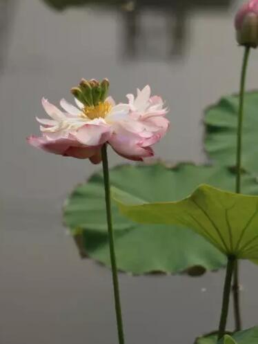 這個品種的荷花是從武漢引進(jìn)的,花朵較小,看上去十分精巧,花瓣較短,呈橢圓形,尖端為粉紅色。浪花開花繁密,適于缸、盆栽植。