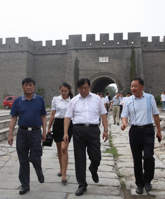 拱北門為明代汝寧府城北門,取眾星拱北之意,門外護城河上的宏濟橋,是出入城門的交通要道,橋上青石鋪地,車轍深深,鐫刻著汝南古城悠遠而滄桑的故事。張廣智一行詳細查看了拱北門、宏濟橋等文物的保護情況,認真聽取了當?shù)匚幕糜萎a(chǎn)業(yè)發(fā)展情況匯報。張廣智強調(diào),汝南作為千年古縣,擁有眾多珍貴的文化旅游資源,要給予高度重視、切實加強保護,注重專家設(shè)計、遵循發(fā)展規(guī)律,不斷提升科學規(guī)劃水平,增強文化旅游的吸引力、影響力和競爭力,著力打造文化旅游品牌,積極轉(zhuǎn)變旅游產(chǎn)業(yè)發(fā)展方式,整合利用各種資源優(yōu)勢,積極推進文化旅游事業(yè)健康持續(xù)較快發(fā)展。