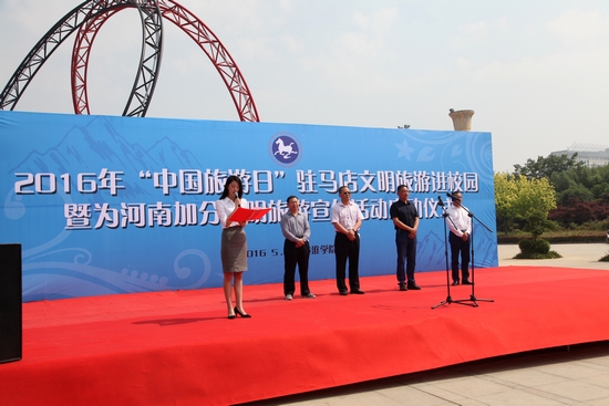 12. 5月19日,由黃淮學(xué)院、駐馬店市文明辦、市旅游局共同主辦的2016年“中國旅游日”駐馬店文明旅游進(jìn)校園暨為河南加分文明旅游宣傳啟動儀式在黃淮學(xué)院舉行;