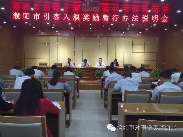 9月20日,我市召開《濮陽市引客入濮獎勵暫行辦法》(以下簡稱《暫行辦法》)說明會,會議對《暫行辦法》具體實施、操作流程進行詳細(xì)說明,各縣(區(qū))旅游局、市內(nèi)各大旅行社、各星級飯店、A級景區(qū)、旅游汽車運輸公司及旅游商品企業(yè)負(fù)責(zé)人,共100余人參加會議。