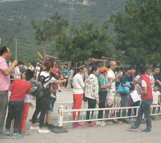 拳拳愛心感游客。黃金周期間,濟(jì)源市五龍口景區(qū)日接待量突破萬人,通往景區(qū)道路通行緩慢。售票處、游覽車候車處游客排隊數(shù)十米。得益于相關(guān)部門的全力配合,公安交警在路口及時疏導(dǎo),景區(qū)工作人員現(xiàn)場維持秩序,并向排隊游客贈送礦泉水。一瓶瓶濟(jì)源特色旅游商品——王屋山不老泉水既表達(dá)了濟(jì)源旅游人的愛心,又安撫了游客的心情。