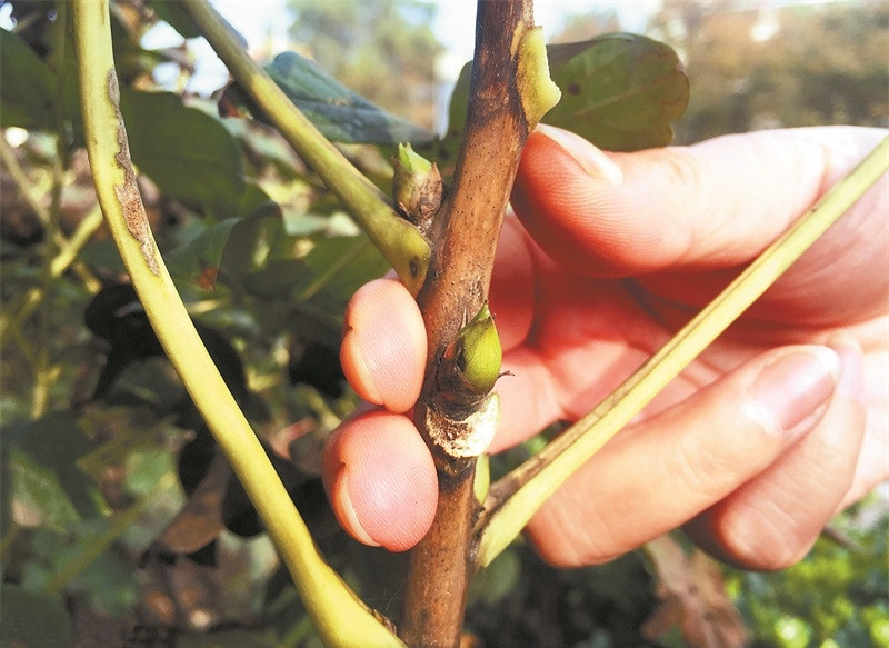 “秋冬養(yǎng)護(hù)時(shí),大多會(huì)從枝條第一個(gè)飽滿綠芽往上1厘米至1.5厘米開(kāi)始修剪,并將花葉全部打掉。”市廣場(chǎng)綠化中心生產(chǎn)科科長(zhǎng)韓麗娟說(shuō),這樣做既能避免枯枝敗葉跟根部搶養(yǎng)分,也能將殘留在花葉表面的蟲(chóng)卵清除掉,減少病蟲(chóng)害的發(fā)生。