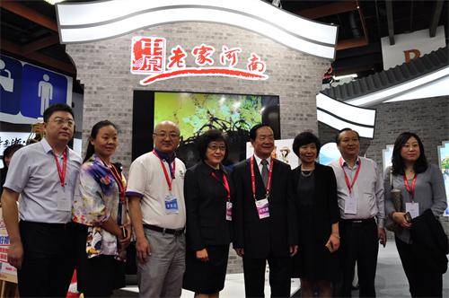 臺灣觀光協(xié)會榮譽會長張學(xué)蘇(右四)河南省旅游局巡視員何琳(左四)與參會代表合影