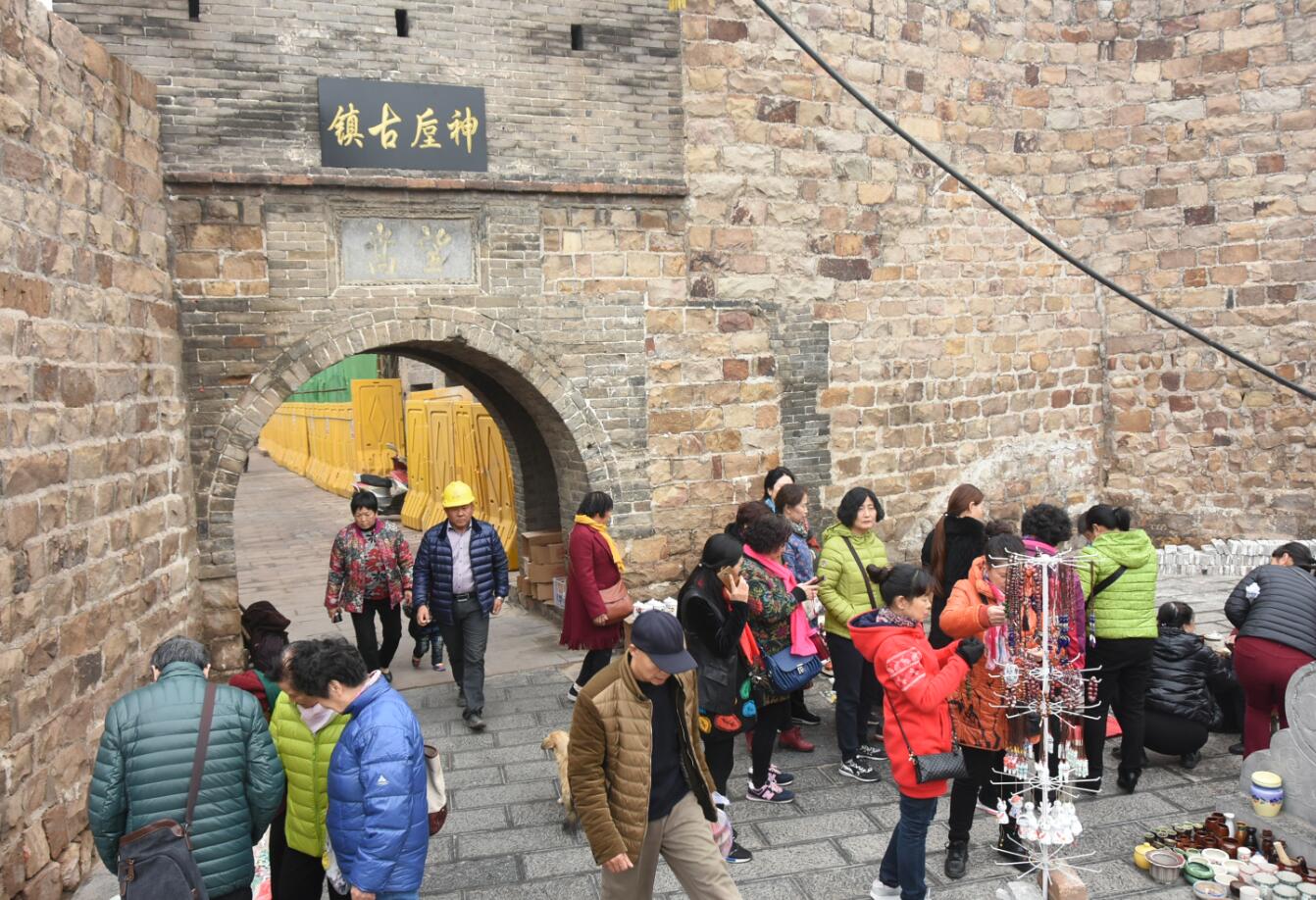 隨后,老人們?nèi)ド駡嬂辖謪⒂^,神垕老街位于神垕中心鎮(zhèn)區(qū),俗稱“七里長街”,原是由肖河(騶虞河)兩岸的二道街、高老莊、朱園溝、茶葉溝、老窯坡5個(gè)古老村莊連片而成的。神垕老街由東、西、南、北4座古寨和紅石橋、關(guān)爺廟兩個(gè)行政街道組成。肖河(騶虞河)從西向東穿過老街,騶虞橋連接著東西兩個(gè)寨。老街有多座寨門,寨墻高大堅(jiān)固,而且都有炮樓,古時(shí)主要用作軍事防御和抵擋匪患,防范洪災(zāi)。每個(gè)寨子都有一個(gè)文雅的名字,如東寨為“望嵩”,西寨為“天保”等,而且和城門一樣,用青石丹書鑲嵌在寨門之上。同時(shí),每個(gè)寨子都有不少傳統(tǒng)建筑和富有地方特色的民宅、胡同。
