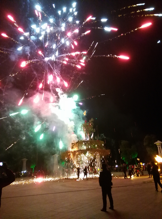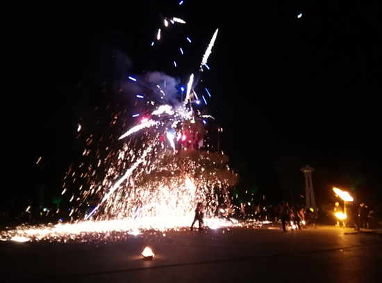 無論是“打鐵花”的準備——砍柳枝、搭花架,還是 “煙花噴紅吐翠,鐵花流光溢彩”都定格在了攝制組的鏡頭里。