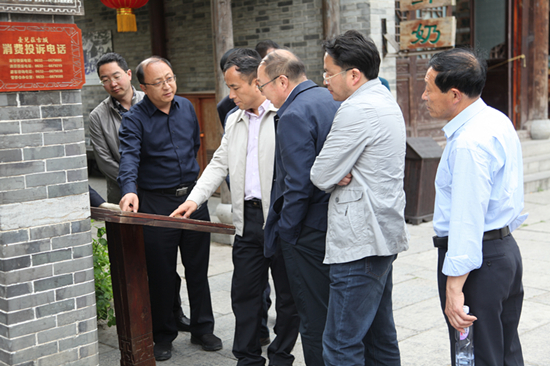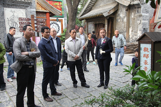 位于山東省南部的臺(tái)兒莊古城,歷史文化悠久,有著“天下第一莊”之譽(yù),是臺(tái)兒莊大戰(zhàn)的發(fā)生地。21日下午,考察組一行在棗莊市旅服委副主任李志宏,臺(tái)兒莊區(qū)旅服局副局長張輝的陪同下,參觀考察了臺(tái)兒莊古城,詳細(xì)了解臺(tái)兒莊古城重建模式、文化旅游產(chǎn)業(yè)發(fā)展方面的經(jīng)驗(yàn)做法。臺(tái)兒莊古城面積2平方公里,53處戰(zhàn)爭遺跡保存完好,于2009年啟動(dòng)重建,現(xiàn)已成為集物質(zhì)文化遺產(chǎn)、非物質(zhì)文化遺產(chǎn)和文化產(chǎn)業(yè)于一體的文化綜合體。李志宏副主任介紹說,臺(tái)兒莊古城旅游歷經(jīng)8年的建設(shè)發(fā)展,景區(qū)日益成熟和完善,現(xiàn)在已經(jīng)是國家5A級(jí)景區(qū)、全國首個(gè)海峽兩岸交流基地、首個(gè)國家文化遺產(chǎn)公園、首個(gè)國家非物質(zhì)文化遺產(chǎn)博覽園。僅2016年就接待游客300多萬人次,旅游綜合收入2億多元;臺(tái)兒莊區(qū)旅服局副局長張輝還介紹了臺(tái)兒莊區(qū)創(chuàng)建國家全域旅游示范區(qū)以及在旅游發(fā)展機(jī)制,重點(diǎn)項(xiàng)目、公共服務(wù)體系建設(shè)和綜合監(jiān)管、智慧旅游等方面工作情況?疾旖M一行對(duì)臺(tái)兒莊古城的建設(shè)、經(jīng)營、運(yùn)作的經(jīng)驗(yàn)和做法贊不絕口,認(rèn)為臺(tái)兒莊古城的發(fā)展理念、戰(zhàn)略眼光、運(yùn)作模式、旅游開發(fā)等工作經(jīng)驗(yàn)值得學(xué)習(xí)和借鑒,希望下一步加強(qiáng)兩地交流合作,促進(jìn)兩地旅游服務(wù)產(chǎn)業(yè)更好更快的發(fā)展。