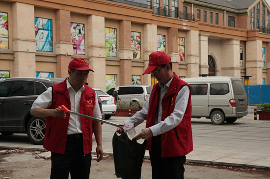 午后暴雨過后的街道兩旁,枯枝、落葉、煙頭、碎紙、包裝袋等垃圾格外醒目,市旅游局志愿者們一來到置地大道,就自覺分成兩組,一組路南、一組路北,進行拉網(wǎng)式的撿拾垃圾,規(guī)整沿街停靠的自行車、電動車活動。他們2至3人分工協(xié)作、相互配合,有的用夾子撿拾垃圾,有的一手拿垃圾袋子,一手直接撿垃圾,完全不顧臟和累。市旅游局志愿者們在撿拾垃圾的同時,每遇到自行車集中停靠的商戶門口,志愿者們還主動把被大風(fēng)吹倒的自行車、電動車扶起來,規(guī)整到位,這些行動深深的感染了沿街的商戶和過往的行人,他們有的也主動參與進來,自覺的把自行車停放整齊,主動把門口停放的自行車、電動車規(guī)整好,經(jīng)過近2個小時的活動,置地大道兩側(cè)(樂山路至富強路段)的垃圾基本上被撿拾一清,看上去干干凈凈,路上來往的市民紛紛贊嘆創(chuàng)建全國文明城市美化了環(huán)境、靚化了城市。