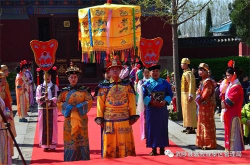 周末嘉應(yīng)觀景區(qū)格外熱鬧,悠悠雅樂奏響百年院落,清朝女子跳著宮廷慶隆舞,渾厚的祭祀大典音樂在耳畔響起,游客爭搶著拍照合影;再看景區(qū)中大殿人頭攢動,來自北京、邯鄲市場的旅游團(tuán)游客津津有味地欣賞大型《雍正皇帝拜謁禹王大典》的表演。