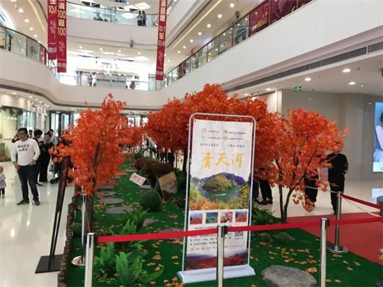 圖 景區(qū)在焦作萬達廣場主要商鋪、道路布置了青天河紅葉景觀展覽。
