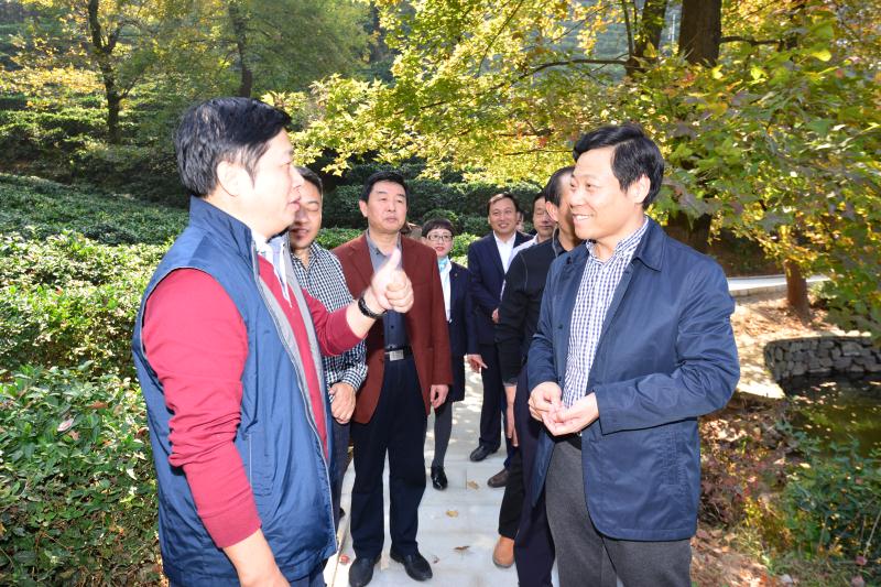 在景區(qū)代表性景觀“清代茶園”,李延慶一行聽取了“清代茶園”的介紹之后,當(dāng)?shù)弥摬鑸@所產(chǎn)茶葉是以“斤”銷售時,李延慶建議以“克”銷售,推動從旅游商品角度出發(fā)變粗放式銷售為精細(xì)化運營,賦予茶葉文化內(nèi)涵,從賣產(chǎn)品轉(zhuǎn)變?yōu)橘u文化。在調(diào)研了凈居寺寺廟內(nèi)外部環(huán)境后李延慶指出,凈居寺門前的維修改造風(fēng)格要與寺廟整體建筑風(fēng)格一致,要把凈居寺與天臺宗的文化進行傳承和弘揚,打歷史、文化、宗教品牌。在調(diào)研佛教藝術(shù)博物館各類珍貴的館藏文物后李延慶認(rèn)為,這是大蘇山國家森林公園文化品牌的一個有力支撐,景區(qū)的發(fā)展不僅要重視國內(nèi)市場,更要著眼韓國、日本、東南亞等海外市場,通過天臺宗為紐帶吸引佛教信眾來此禮佛、參禪、朝拜,省局將為大蘇山國家森林公園景區(qū)發(fā)展提供宣傳支持,迅速提升人氣,協(xié)調(diào)與周邊景區(qū)學(xué)習(xí)互動,支持景區(qū)培養(yǎng)專業(yè)人才。