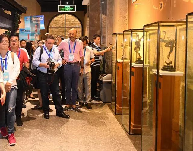 考察團首先來到濮陽城市文化會客廳·水秀宴進行參觀。對于獨具特色的雜技元素壁畫、傳統(tǒng)雜技道具以及全國各地名優(yōu)小吃等表現(xiàn)出了濃厚的興趣,對現(xiàn)場展示的非物質(zhì)文化遺產(chǎn)更是連連稱奇,贊不絕口。