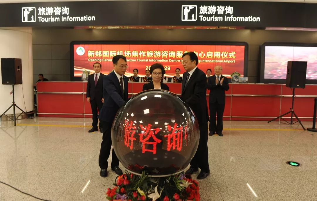 6月29日上午,新鄭國際機(jī)場焦作旅游咨詢服務(wù)中心啟用儀式在新鄭國際機(jī)場T2航站樓二層到達(dá)大廳舉行。河南省旅游局副局長周耀霞、焦作市人民政府副市長魏超杰共同為新鄭國際機(jī)場焦作旅游咨詢服務(wù)中心啟用啟動水晶球,焦作市旅游局局長金貴斌,副局長楊天軍、李建陽,焦作市相關(guān)縣(市)區(qū)政府、旅游局負(fù)責(zé)人及各景區(qū)工作人員參加了啟用儀式。