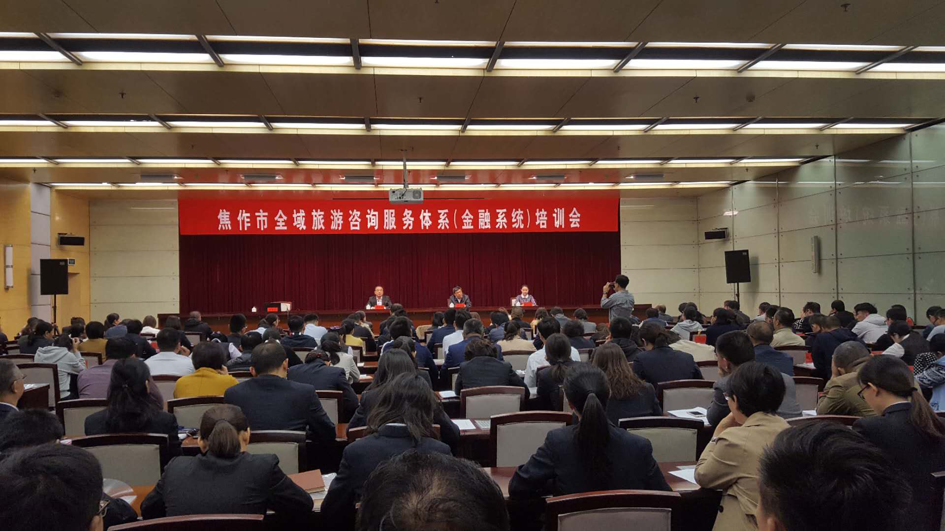 10月12日上午,根據(jù)焦作市創(chuàng)建國家全域旅游示范市工作總體安排,為建立健全全域旅游咨詢服務體系,切實提升“金融系統(tǒng)”窗口單位旅游服務能力和水平,強化全域旅游咨詢服務體系人才隊伍建設,順利推進全域旅游示范市創(chuàng)建,焦作市旅游局在會議中心國際會議廳舉辦了焦作市全域旅游咨詢服務體系(金融系統(tǒng))培訓會,來自市旅游局、市政府金融辦、五城區(qū)金融辦“全域旅游示范市創(chuàng)建”分管負責人,五城區(qū)各金融機構“全域旅游示范市創(chuàng)建”聯(lián)絡人,團市委青年志愿亭、火車站、東方紅咨詢點等全域旅游咨詢體系各服務網(wǎng)點的200多位工作人員參加了會議。