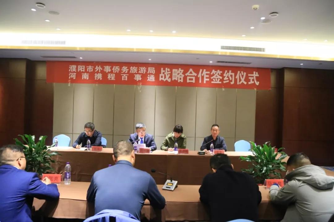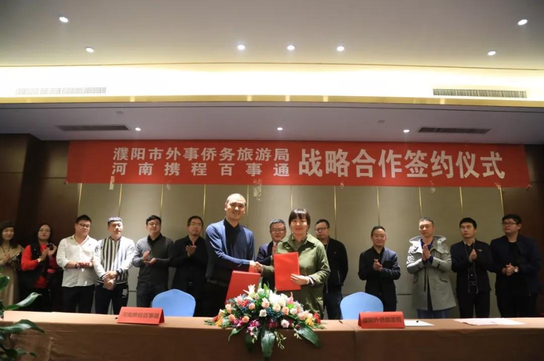 10月16日上午,濮陽市外事僑務(wù)旅游局與河南攜程百事通戰(zhàn)略合作簽約儀式在申泰雅閣溫泉度假酒店舉行,濮陽市外事僑務(wù)旅游局局長邊宏慶、副局長徐翠微,河南攜程百事通總經(jīng)理劉玉柱、營銷總監(jiān)朱傳玉出席簽約儀式。