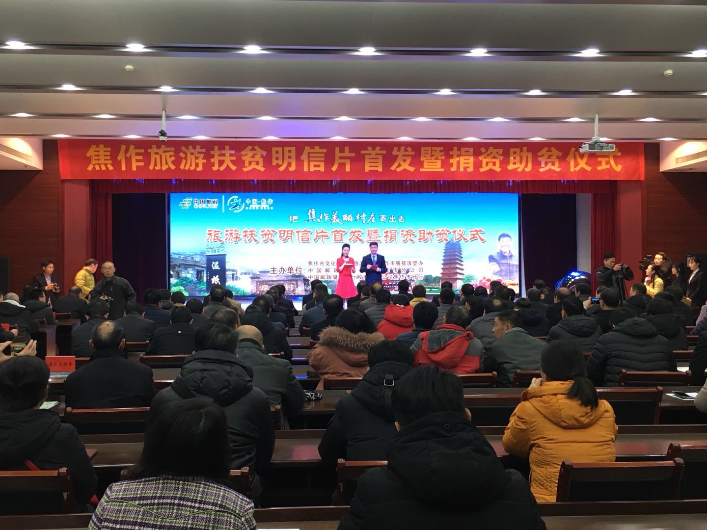 1月24日,由焦作市文化廣電和旅游局、焦作市脫貧攻堅(jiān)辦公室、中國郵政集團(tuán)焦作市分公司、中國郵政儲(chǔ)蓄銀行股份有限公司焦作市分行共同舉辦的“把焦作美麗村莊寄出去”旅游扶貧明信片首發(fā)暨捐資助貧儀式在焦作市郵政大廈舉行。河南省文化和旅游廳副廳長李延慶、焦作市人民政府副市長牛炎平、河南郵政集郵與文化傳媒部總經(jīng)理胡慶魁等出席并啟動(dòng)“把焦作美麗村莊寄出去”活動(dòng)。
