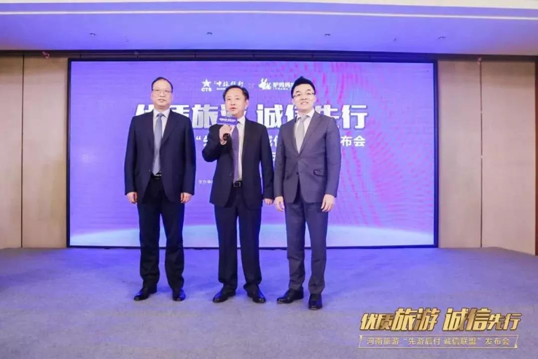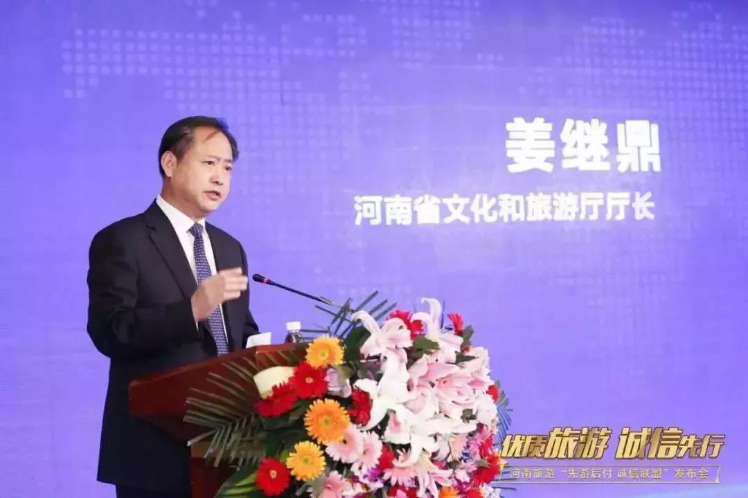 4月9日,由河南省旅游協會、中旅銀行、驢媽媽旅游網主辦的河南旅游“先游后付誠信聯盟”發(fā)布會暨成立儀式在鄭州舉行。省文化和旅游廳廳長姜繼鼎出席儀式并致辭。省旅游協會秘書長滑蕾出席儀式。焦作市文化廣電和旅游局黨組書記米紀文、副局長李建陽,焦作中旅銀行行長游翔,驢媽媽旅游網創(chuàng)始人洪清華參加活動。