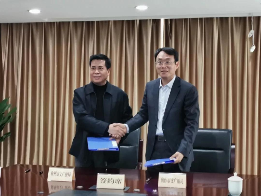 焦作市文化廣電和旅游局局長金貴斌和徐州市文化廣電和旅游局局長崔鋒簽署兩地文旅合作協(xié)議。