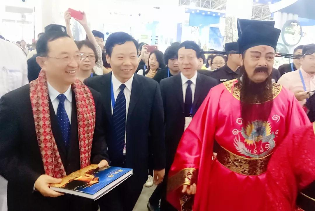 前來參加開幕式的國家文化和旅游部雒樹剛部長對河南參展團(tuán)給予高度評價,稱贊河南文化旅游做得好,開封參展團(tuán)的“包公”向雒部長贈送畫冊并簡要介紹開封包公文化,受到部長稱贊。
