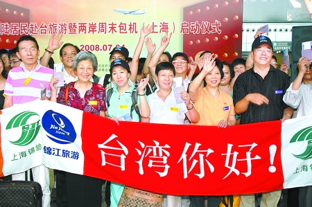 7月4日13時30分許,大陸居民赴臺旅游上海首發(fā)團共100名游客搭乘兩岸周末包機東方航空MU5007航班,從上海浦東國際機場出發(fā)飛往臺北松山機場,開始“寶島臺灣十日游”之旅。