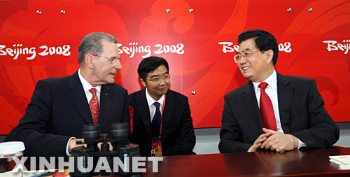 8月8日晚,中國(guó)國(guó)家主席胡錦濤、國(guó)際奧委會(huì)主席羅格出席北京奧運(yùn)會(huì)開(kāi)幕式。