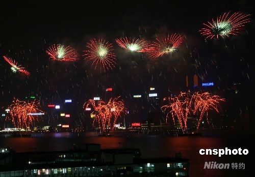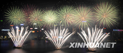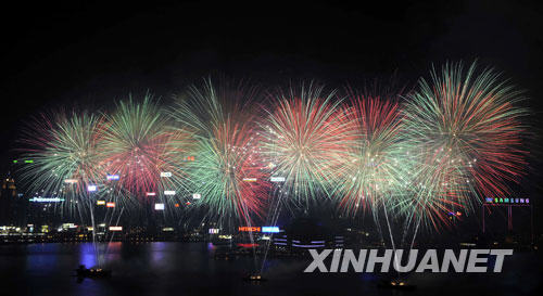 國慶之夜,“東方之珠”分外璀璨,閃閃“紅星”照耀維港,“中國心”伴“祥云”綻放。一場主題為“五環(huán)揚(yáng)威賀國慶,卅載改革耀中華”的煙花匯演,讓香港市民和游客一起分享節(jié)日的歡樂,共同慶祝中華人民共和國成立59周年。