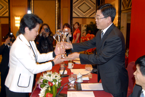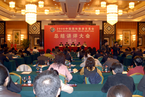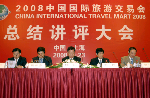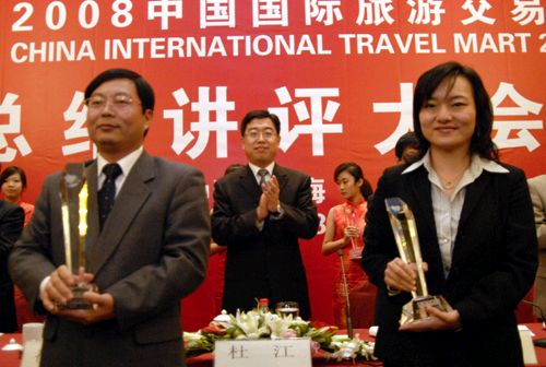 由國家旅游局、上海市人民政府和中國民用航空局共同主辦的2008中國國際旅游交易會于11月23日在上海圓滿落下帷幕。國家旅游局副局長杜江、上海市政府副秘書長王偉等領導出席了總結講評大會,并為獲獎者頒獎。國家旅游局旅游促進與國際聯(lián)絡司司長祝善忠做2008年中國國際旅游交易會總結講評。上海市旅游局獲得本屆旅交會特殊貢獻獎。