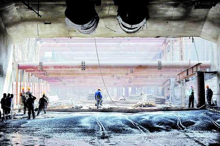 12月2日,施工人員在隧道出口處進(jìn)行鋪路施工。被譽(yù)為“萬(wàn)里長(zhǎng)江第一隧”的武漢長(zhǎng)江隧道工程施工進(jìn)入最后攻堅(jiān)階段,可望年內(nèi)全面建成。目前,隧道內(nèi)的墻體裝修、排煙滅火設(shè)施與機(jī)電設(shè)備的安裝、出口匝道的建設(shè)施工正在緊張有序地進(jìn)行。新華社發(fā)