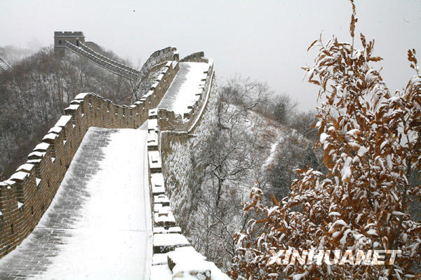 12月10日,北京迎來今年入冬后的第一場降雪,慕田峪長城銀裝素裹,景色十分壯美。 新華社發(fā)(卜向東/攝)