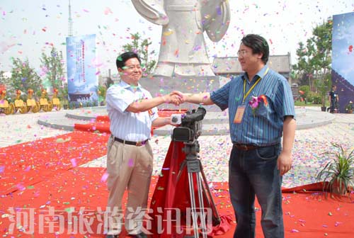 6月1日上午10時(shí)左右,在一陣熱烈的鞭炮聲中,中國(guó)許昌第二屆三國(guó)文化周中的一項(xiàng)重要活動(dòng)——曹操雕像揭幕暨《尋找曹操墓》開拍儀式在魏武帝廣場(chǎng)隆重舉行。省旅游局紀(jì)檢組長(zhǎng)周保建、許昌市市長(zhǎng)李亞為曹操雕像揭幕,許昌市人大副主任張國(guó)棟、中央電視臺(tái)編導(dǎo)溫晨為《尋找曹操墓》開機(jī)揭幕,副市長(zhǎng)申武裝、政協(xié)副主席赫連錫典參加儀式。
