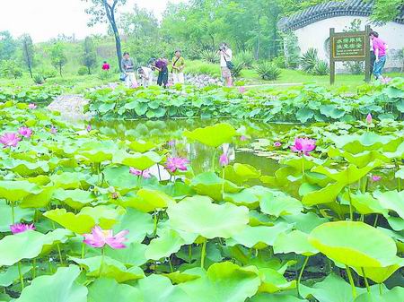 今夏展出的荷花品種有83種,盆栽荷花700多盆,池栽荷花面積約1.4萬(wàn)平方米,其中古代蓮、粉千葉、大灑錦、東湖紅蓮、金鳳展翅、千瓣蓮、貴妃出浴、一丈青、中日友誼蓮等均為荷花中的精品。