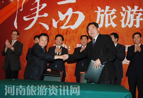 8月26日下午,陜西旅游推介會(huì)在鄭州市隆重舉行,陜西、河南兩省旅游局簽訂了合作協(xié)議。河南省副省長(zhǎng)劉滿倉、陜西省副省長(zhǎng)景俊海、河南省政府副巡視員鄭林、河南省旅游局局長(zhǎng)蘇福功、陜西省旅游局局長(zhǎng)董憲民、河南省旅游局副局長(zhǎng)何琳,鄭州市各旅行社代表,豫陜兩省媒體代表的能夠參加了推介會(huì)。
