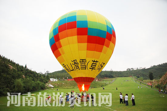 上周六,在充滿時(shí)尚動(dòng)感的背景音樂中,由登封嵩山滑雪滑草場(chǎng)與登封市移動(dòng)通信公司主辦的“健康周末游,休閑草上飛”活動(dòng)拉開序幕,來(lái)自周邊各地的近百名游客與全球通VIP會(huì)員們一同體驗(yàn)了綠色滑草帶來(lái)的另類刺激與燃情魅力。下午4點(diǎn)鐘左右,在一臺(tái)大功率風(fēng)機(jī)的催動(dòng)下,一只高達(dá)25米的超級(jí)熱氣球緩緩漂浮在空中,游客紛紛被吸引并爭(zhēng)相登入吊籃,在工作人員的火焰加熱下,熱氣球升上百米高空,開始帶游客空中游覽中岳嵩山。“太刺激了,這種體驗(yàn)前所未有,特別是升入高空以后,嵩山美景一覽無(wú)余,感覺太棒了!”來(lái)自鄭州的王先生說(shuō)。速度滑草車、太空U波球、草地排球、拔河比賽……充滿自然氣息的大草原上,歡呼聲、尖叫聲在動(dòng)感音符的襯托下,將人們的運(yùn)動(dòng)熱情一次次推向頂峰。