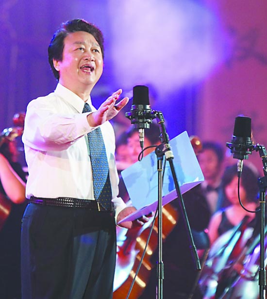 著名朗誦家曹燦在吟誦《沁園春·云臺(tái)山》