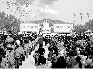 農(nóng)歷九月初九,新鄭當?shù)赜邪葑娴牧曀,重陽?jié)上午,河南省和新鄭市有關(guān)領(lǐng)導干部、當?shù)厝罕娨约坝慰凸?500多人參加了黃帝故里重陽節(jié)拜祖儀式。據(jù)了解,當天,前往黃帝故里尋根拜祖的游客共達到了2萬多人。作為黃帝屯兵馴獸的始祖山,同樣接待了大批游客。