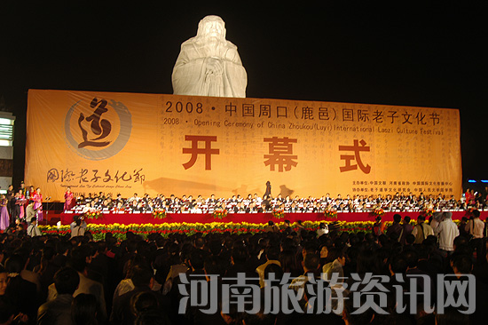 10月20日晚,周口鹿邑縣老子文化廣場萬人匯聚,燈火輝煌。2008中國鹿邑國際老子文化節(jié)開幕式暨《天地人和》大型文藝晚會在這里隆重舉行,為期兩天的2008中國鹿邑國際老子文化節(jié)拉開序幕。來自海內(nèi)外的上萬名各界人士,在緬懷我國偉大先哲老子的同時,身臨其境地感受了博大精深的道家文化。