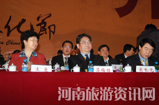省委書記、省人大主任徐光春為文化節(jié)開幕發(fā)來了賀詞。省政協(xié)主席王全書,省委常委、統(tǒng)戰(zhàn)部長劉懷廉,省人大常委會副主任鐵代生,省政協(xié)副主席靳綏東,省人大常委會原副主任王明義出席了開幕式,副省長徐濟超宣讀了徐光春同志的賀信。省旅游局局長蘇福功等省直有關(guān)單位負責人、周口市負責同志也出席了開幕式,并與鹿邑數(shù)萬名群眾一起觀看了開幕式演出。