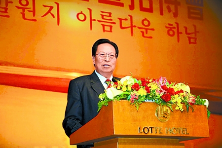 10月28日晚,韓國首都首爾市樂天賓館二樓會議廳,當(dāng)省委書記、省人大常委會主任徐光春說到“不到河南,就不知道中國的歷史;不到河南,就不了解中國的現(xiàn)在”時,全場響起熱烈的掌聲和由衷的贊嘆聲。在漢江之濱舉辦的這場河南省旅游觀光說明會上,徐光春用“古、多、美、奇、快”高度概括了河南豐富的旅游資源,道盡中原風(fēng)采河南特色,一番簡潔而精彩的推介,引起韓國各界人士對河南的強烈興趣。