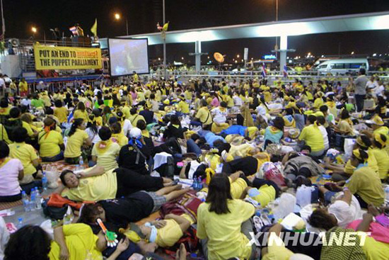 11月26日,泰國反政府人民民主聯(lián)盟成員繼續(xù)在泰國首都曼谷素萬那普國際機場集會。