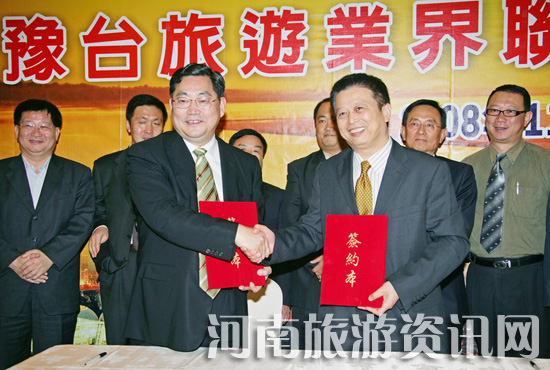 說明會上,河南省旅游局局長蘇福功與臺灣中華兩岸旅行協(xié)會理事長許晉睿簽署《豫臺直航包機旅游合作意向書》。雙方表示同意建立鄭州—臺北航線的合作機制,定期研究包機航線事宜;雙方共同商定旅游線路產(chǎn)品,借助包機航班互送客源,促進雙方旅游業(yè)的共同發(fā)展;雙方共同開發(fā)兩地旅游客源市場,指導(dǎo)幫助雙方旅游企業(yè)宣傳推介銷售旅游產(chǎn)品;雙方商定將互派旅行商、新聞媒體記者開展踩線及采訪活動,各方要為該活動提供必要的幫助和方便;雙方旅游界將積極參加對方舉辦的大型節(jié)慶或促銷活動,互相支持市場拓展工作;為維護兩地旅游市場秩序,避免壓價競爭造成的雙方旅游接待服務(wù)質(zhì)量下降,雙方的旅游團隊接待交給各自推薦的旅行社,并定期對旅行社接待質(zhì)量給予檢查;雙方在首次豫臺直通客運包機開通之際,由指定的旅行社組織客源,并在當(dāng)?shù)嘏e辦首航啟動儀式。