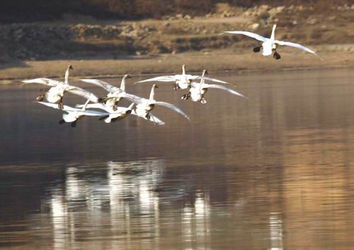 三門(mén)峽市某機(jī)關(guān)退休干部呂升泰,也曾專(zhuān)門(mén)作了一項(xiàng)調(diào)查,發(fā)現(xiàn)天鵝湖、陜縣七里河灣、山西省平陸氧化鋁廠所在河灣、三門(mén)峽大壩上游附近和整個(gè)三門(mén)峽庫(kù)區(qū)兩岸新建的多個(gè)簡(jiǎn)易渡口等處,過(guò)去都是白天鵝的主要棲息越冬區(qū),而現(xiàn)在已經(jīng)很少見(jiàn)到白天鵝。