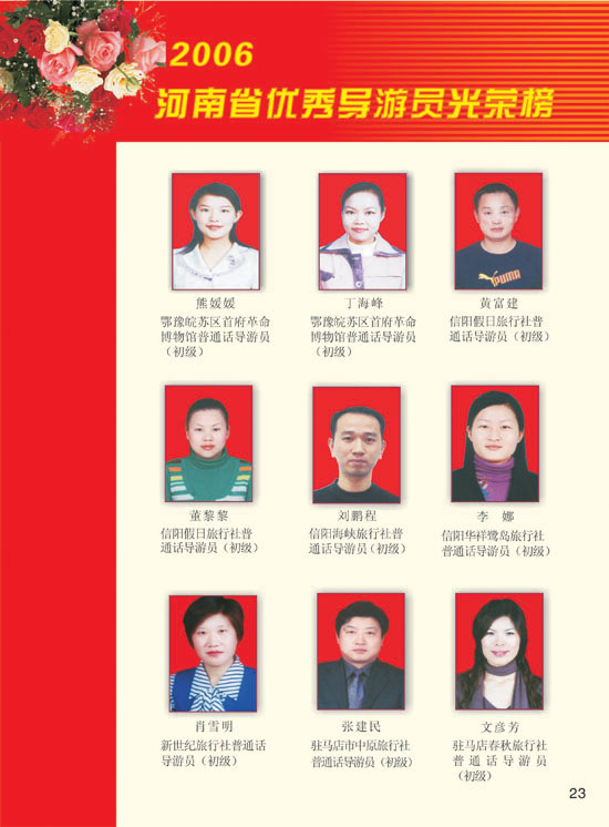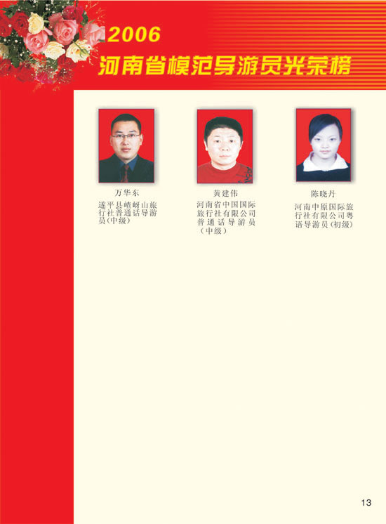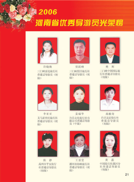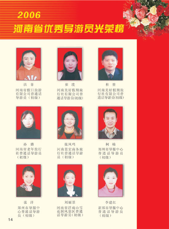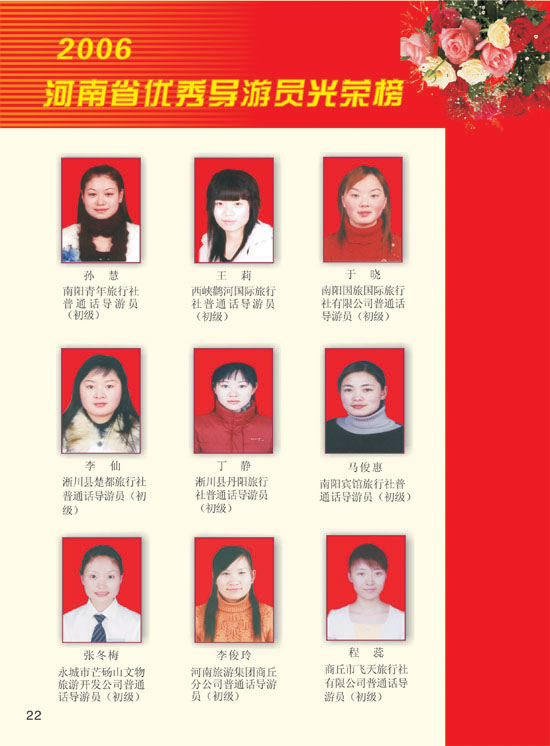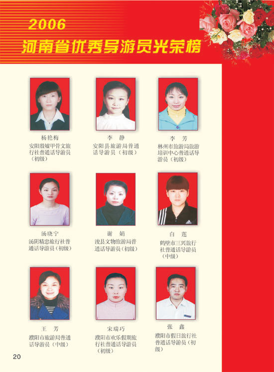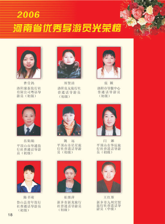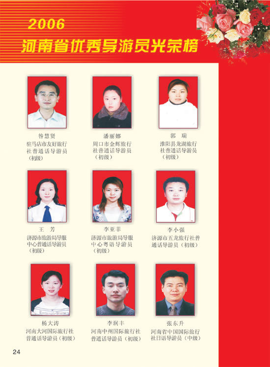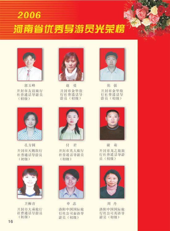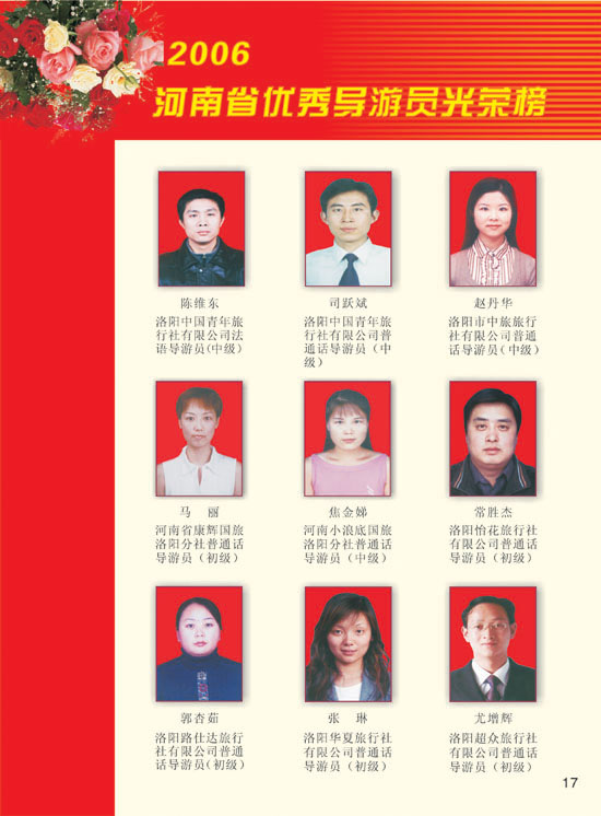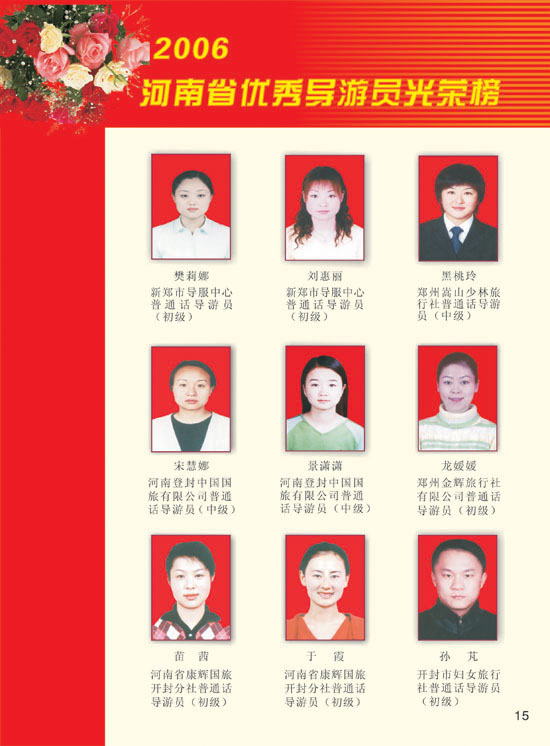 2006河南模范導(dǎo)游員、優(yōu)秀導(dǎo)游光榮榜