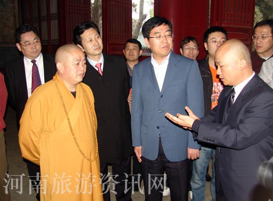 4月11日下午,出席2008中國國內(nèi)旅游交易會的國家旅游局副局長杜江在河南省副省長宋璇濤、河南省旅游局局長蘇福功陪同下,到登封考察少林寺、嵩陽書院景區(qū),并觀看了《禪宗少林·音樂大典》。