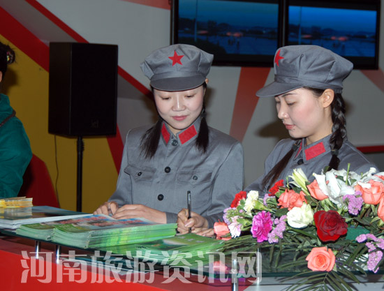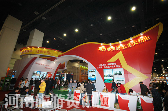 同時,由國家旅游局紅色旅游協(xié)調(diào)領(lǐng)導(dǎo)小組辦公室牽頭,信陽市還代表河南省聯(lián)合安徽省、湖北省共同在此次交易會上設(shè)計搭建了特色鮮明的 旅游展臺――“大別山紅色旅游展區(qū)”,在此展臺上信陽重點突出了“紅色首府 桂花飄香”紅色旅游主題,并響亮提出了“讓將軍之光永遠輝煌大別山”的口號。整個展臺外形類似飄舞的紅旗,以紅、白兩色為基本色調(diào),以《八月桂花遍地開》等從信陽唱遍全國的革命歌曲為背景音樂,集中展示了新縣紅色首府景區(qū)、鄂豫皖革命紀念館、金剛臺紅軍洞群、羅山縣紅二十五長征出發(fā)地何家沖等信陽重點紅色旅游景區(qū),展臺內(nèi)還配有身穿紅軍服裝的“小紅軍”為參觀者現(xiàn)場講解。在交易會場館的五樓還有近40平方米的信陽旅游商品展位,精挑細選一批具有信陽特色的旅游商品進行了展示。
