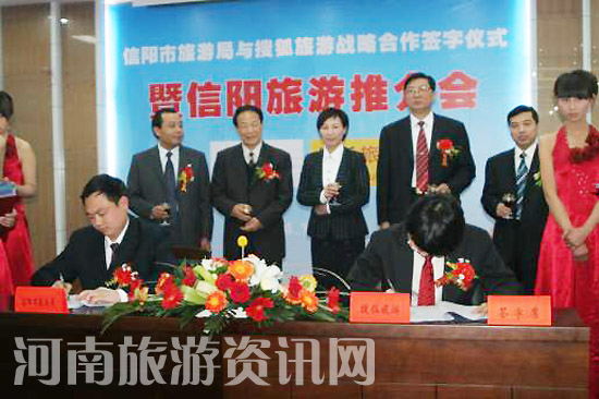 4月11日下午,信陽市旅游局舉行了與搜狐旅游戰(zhàn)略合作簽字儀式暨信陽旅游推介會。信陽市委常委、宣傳部長、副市長張春香;市人大副主任朱繼先;市政協(xié)副主席趙主明;搜狐旅游頻道主編李森;鄭州市旅游局副局長何宏波;信陽市各縣領(lǐng)導(dǎo)出席了本次簽字儀式。會議由信陽市政府副秘書長、旅游局局長童光亮主持,信陽市旅游局副局長彭爌和搜狐旅游主編李森分別代表兩個單位簽署了協(xié)議。