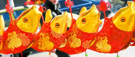 1月25日,是農(nóng)歷大年三十,山東棗莊市城區(qū)街頭售賣的帶有“福”字的魚形裝飾寓意“吉祥如意、年年有余”,受到市民的喜愛。(新華社)
