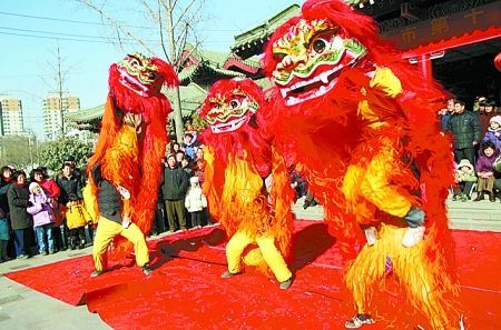 1月25日,人們在濟南市第十四屆明湖春節(jié)文化廟會上觀看精彩的舞獅表演!。ㄐ氯A社)