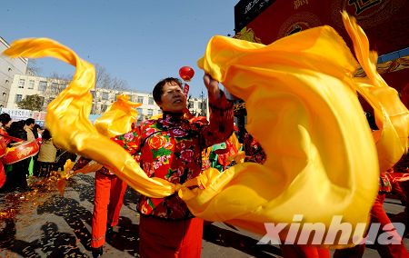 新華網(wǎng)河南頻道1月27日專電 1月26日,民間表演隊伍在鄭州街頭進(jìn)行巡游表演。