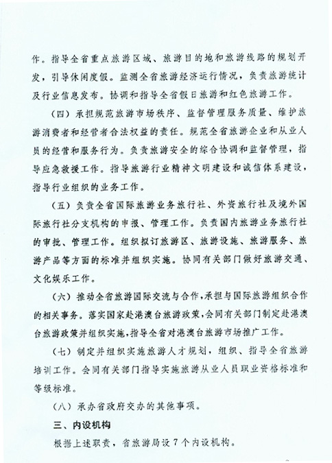 河南省旅游局主要職責(zé)、內(nèi)設(shè)機(jī)構(gòu)和人員編制規(guī)定